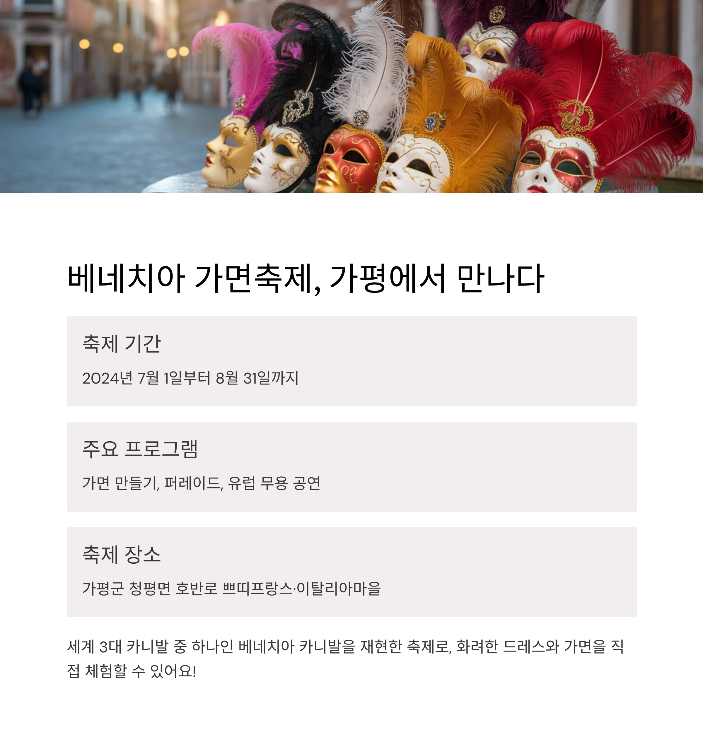 세계 3대 카니발 중 하나인 이탈리아 베네치아 카니발을 모티브로 한 이번 축제는
