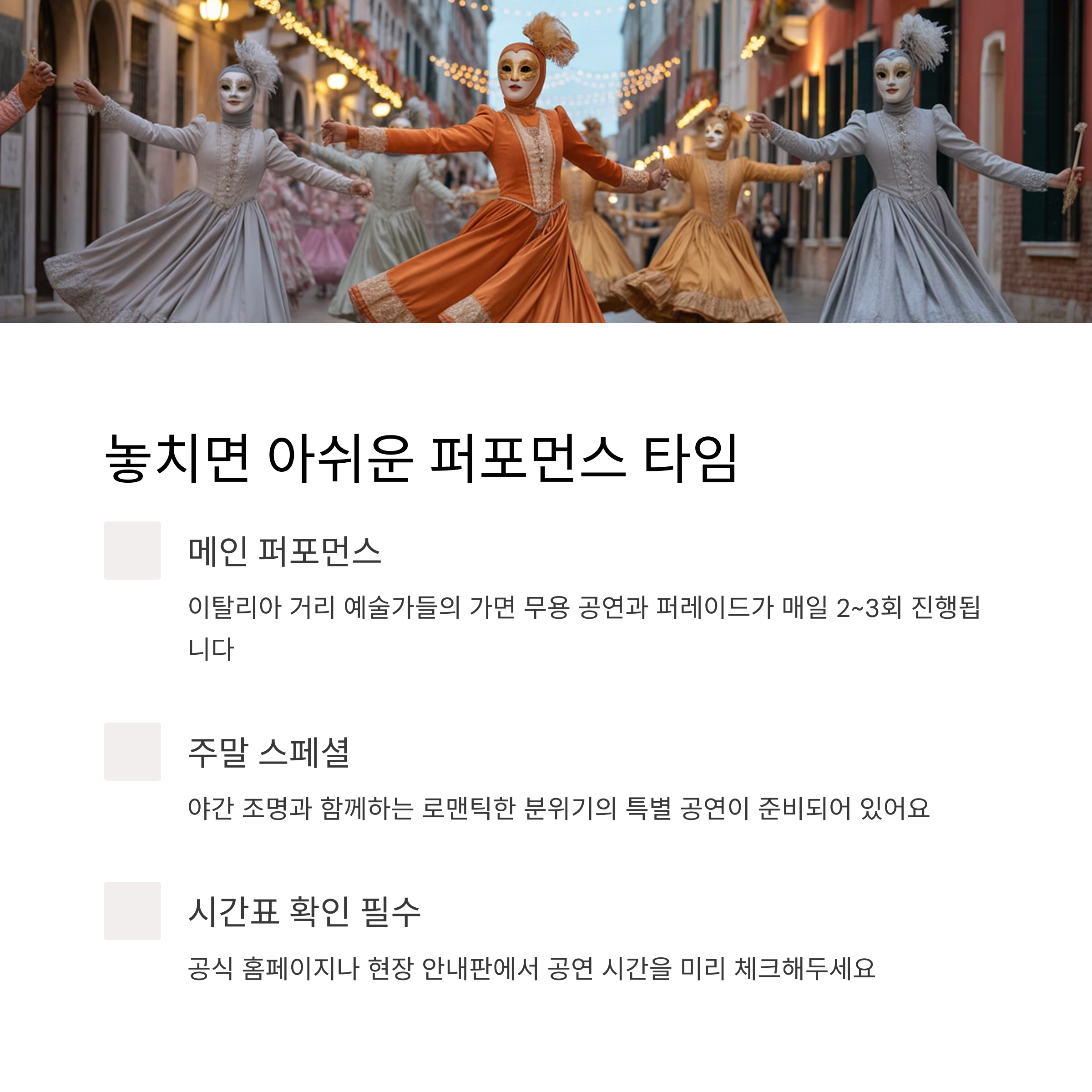 7~8월 동안은 화려한 베네치아 가면축제로 분위기가 한층 더 고조됩니다.