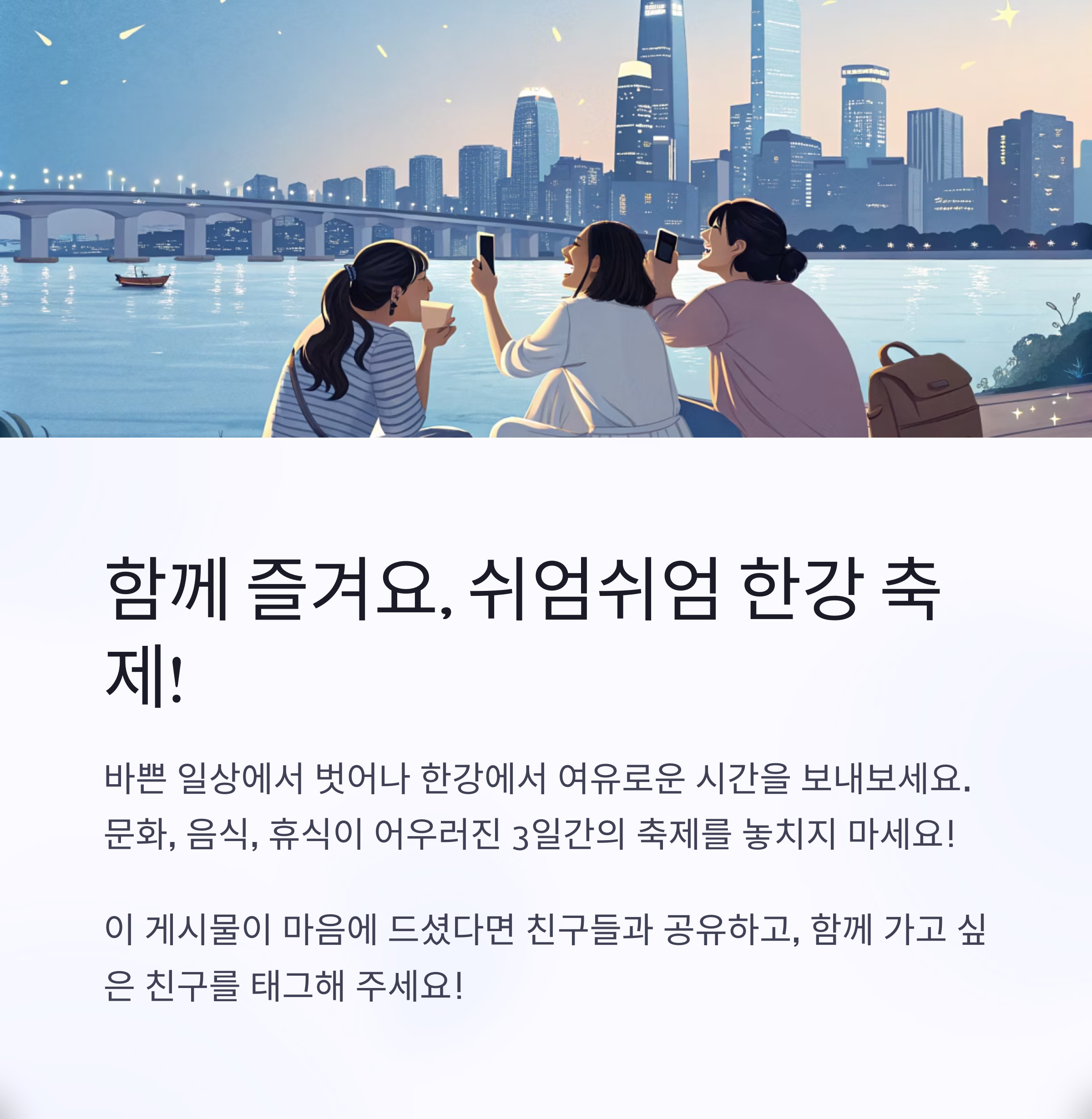 서울의 중심, 뚝섬한강공원에서 열리는 ‘쉬엄쉬엄 한강 3종 축제’는