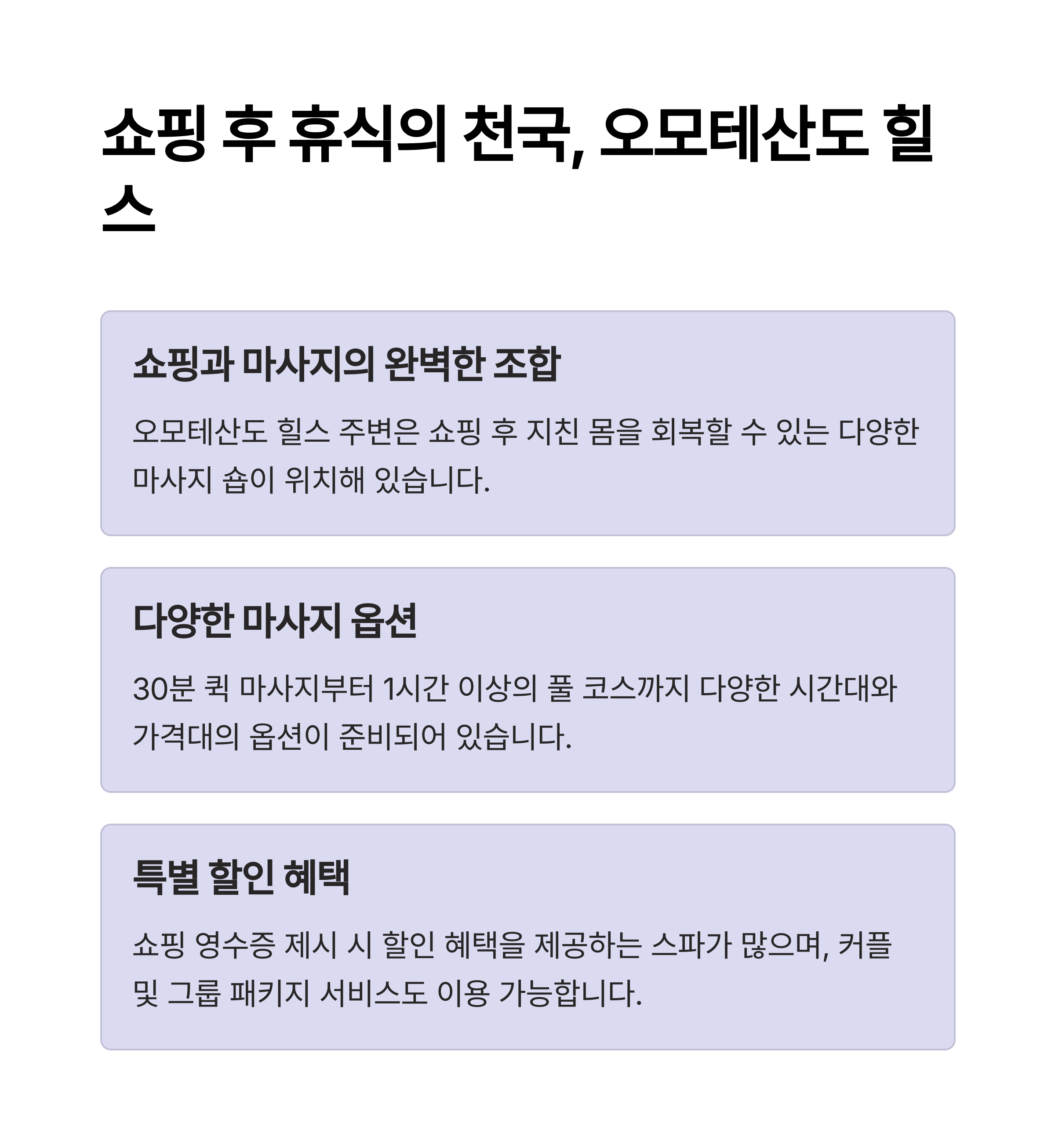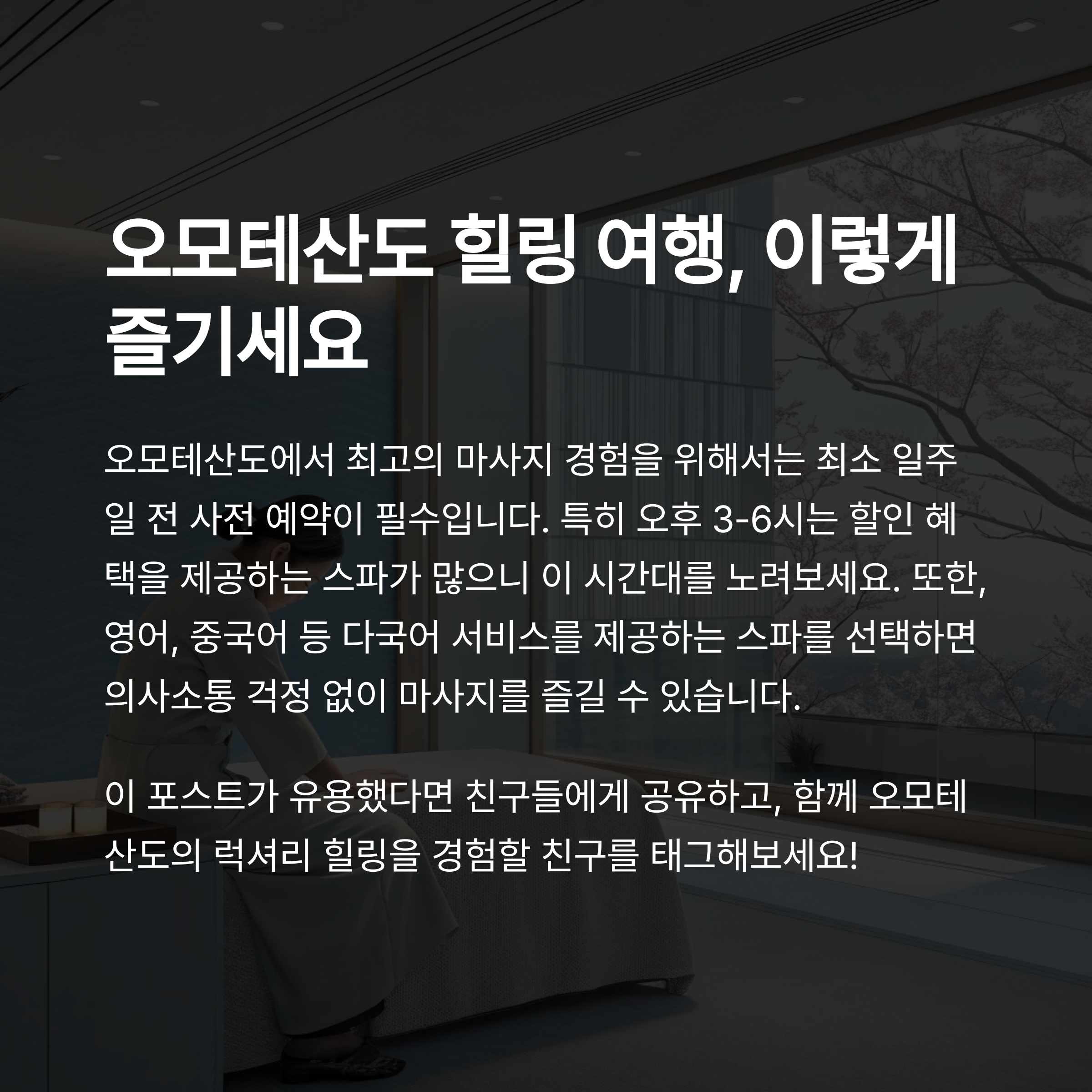 방문 후에는 몸이 가벼워지고, 다음 여행 일정도 활기차게 소화할 수 있을 것입니다.