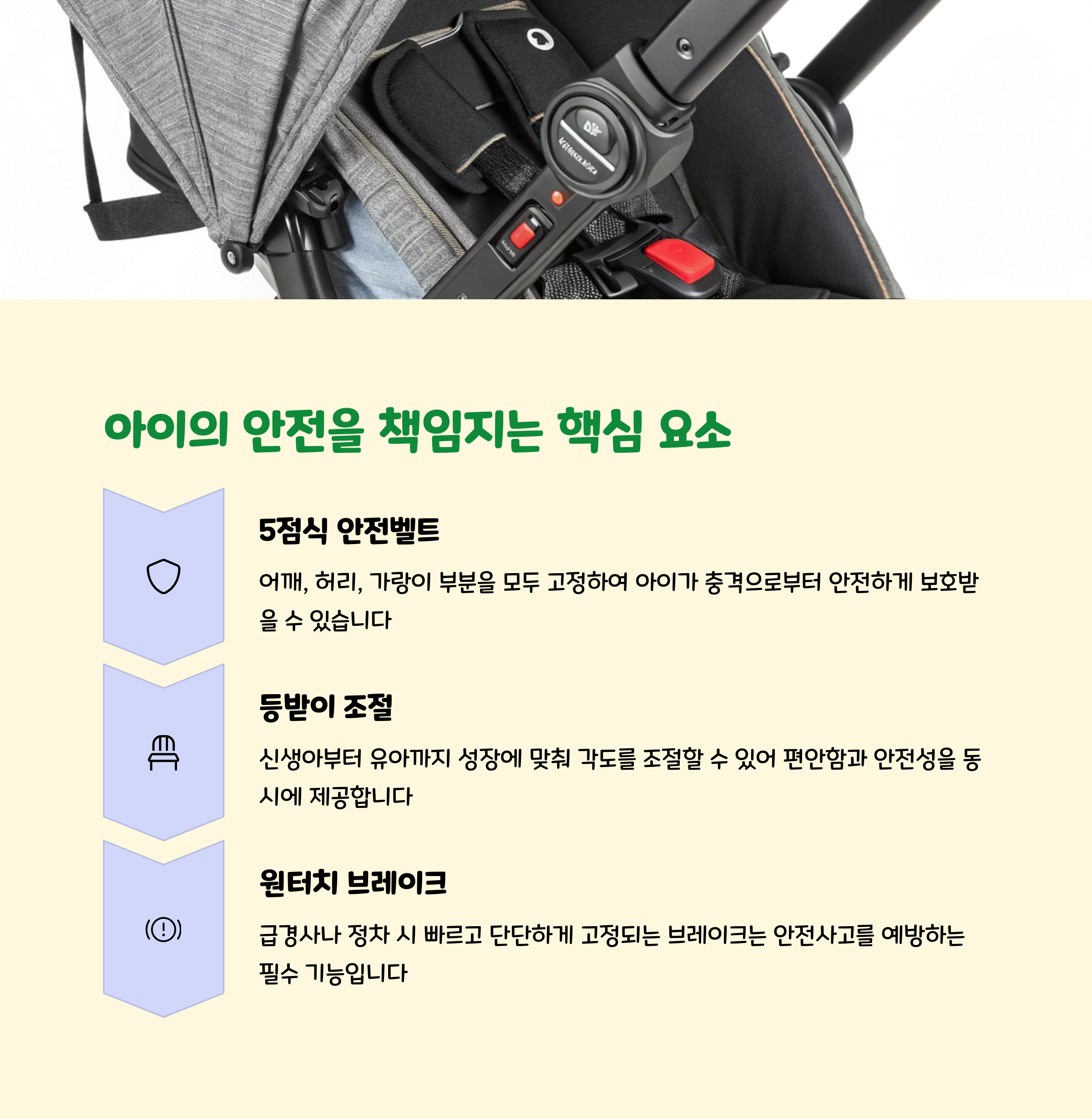 | 브레이크 | 원터치 | 안전 유지 | 편리한 사용 |