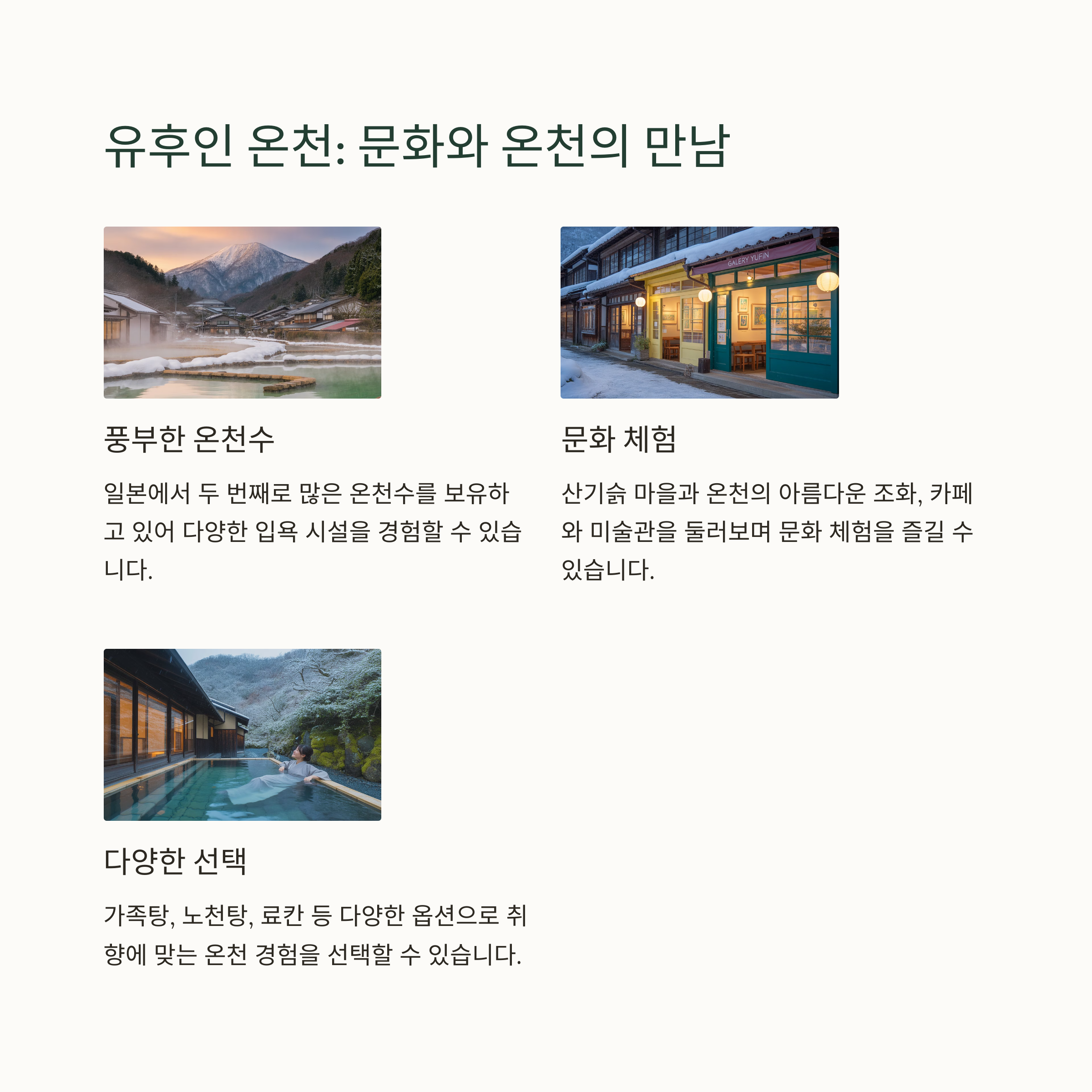 일본 온천 여행은 단순히 물에 몸을 담그는 것을 넘어 지역의 문화와 계절적인 아름다움을 함께 경험할 수 있는 최고의 선택입니다.