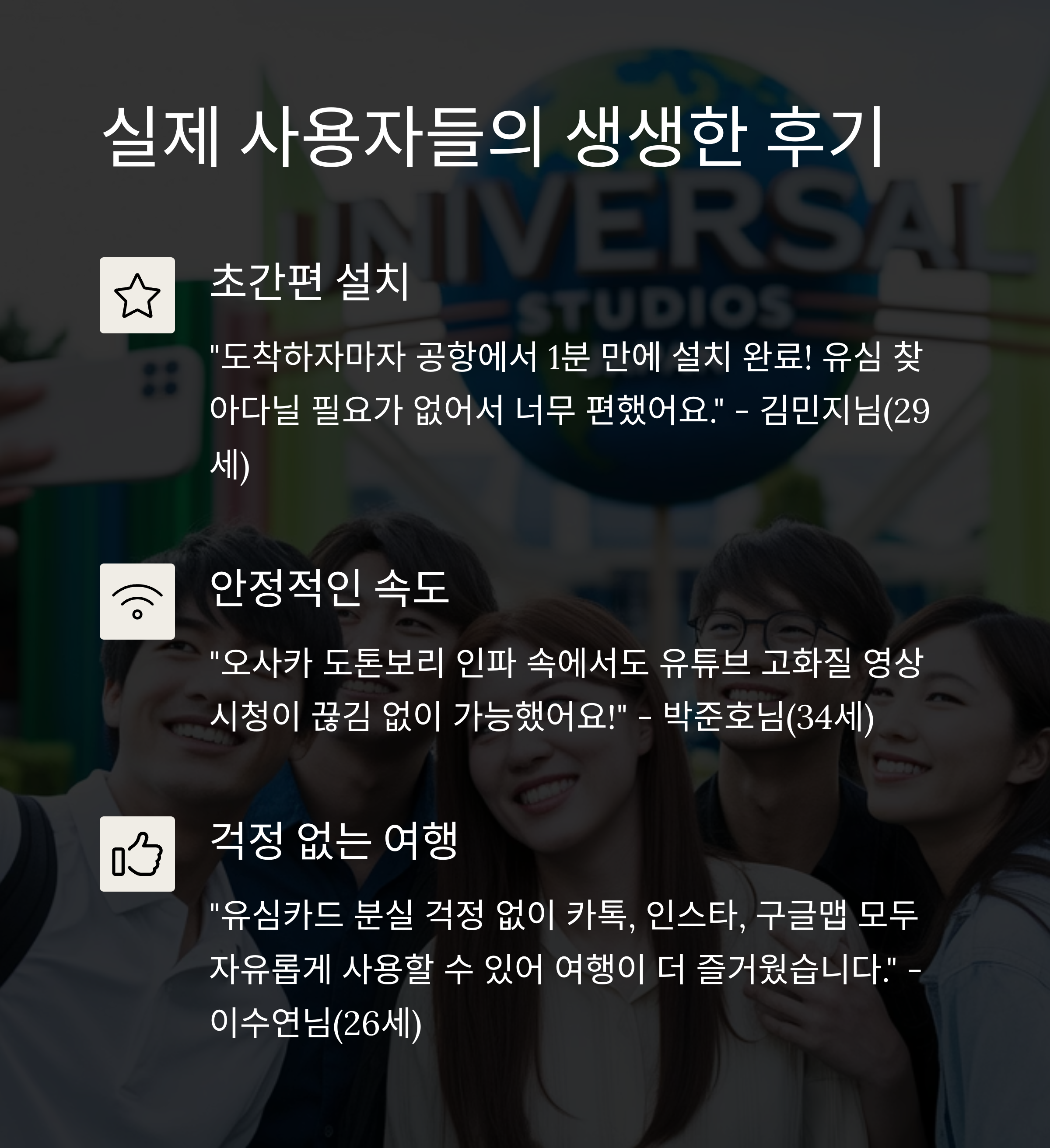 일본 전역에서 안정적인 데이터 환경을 제공합니다. 소도시에서도 2GB의 높은 일일 데이터 제공은 유리합니다. 구글맵과 같은 운용 서비스는 데이터 지원으로 매우 유용합니다.