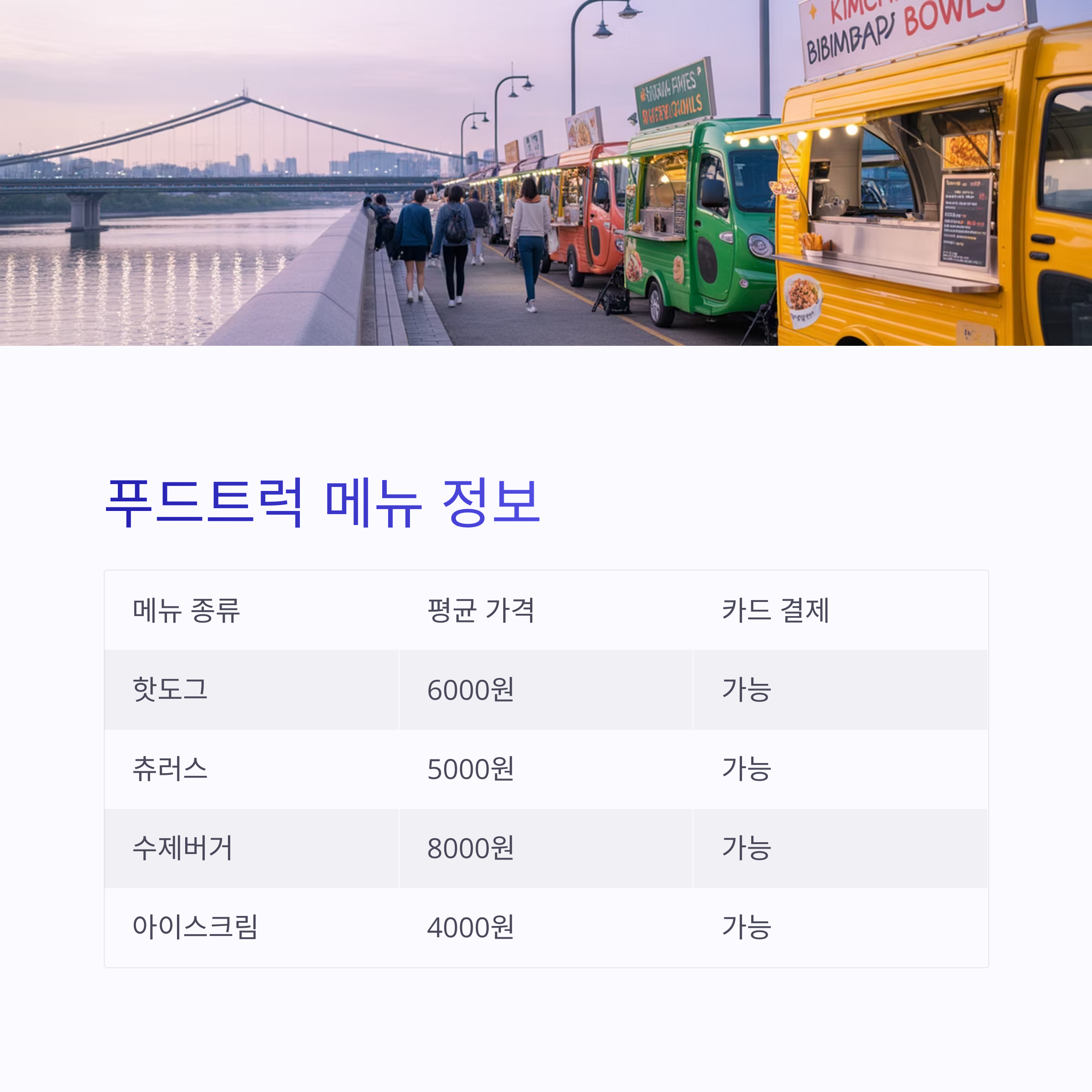 중앙 구간에는 푸드트럭이 배치되어 있고, 곳곳에는 돗자리를 펴고