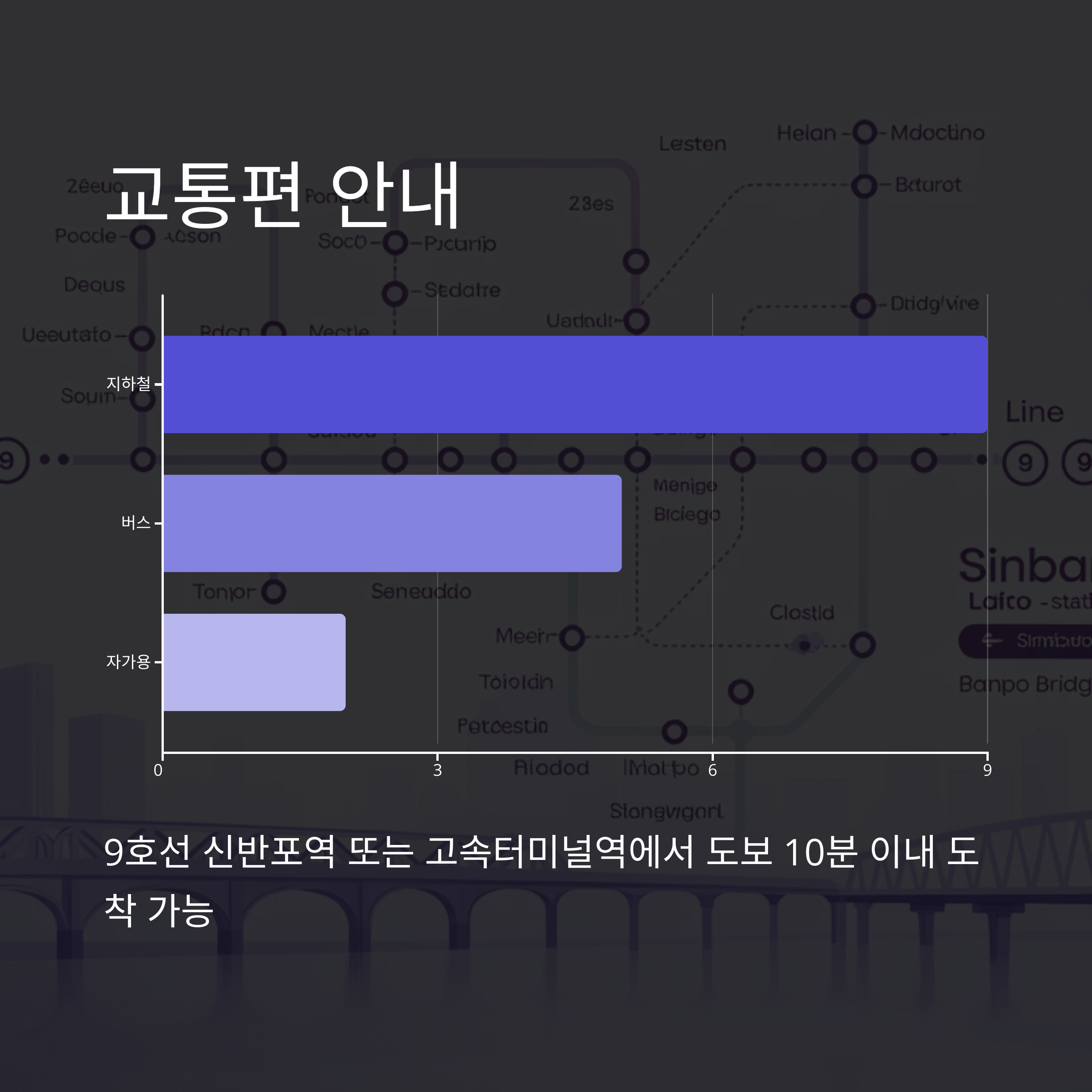 | 지하철 | 높음 | 9호선 신반포역, 도보 10분 |