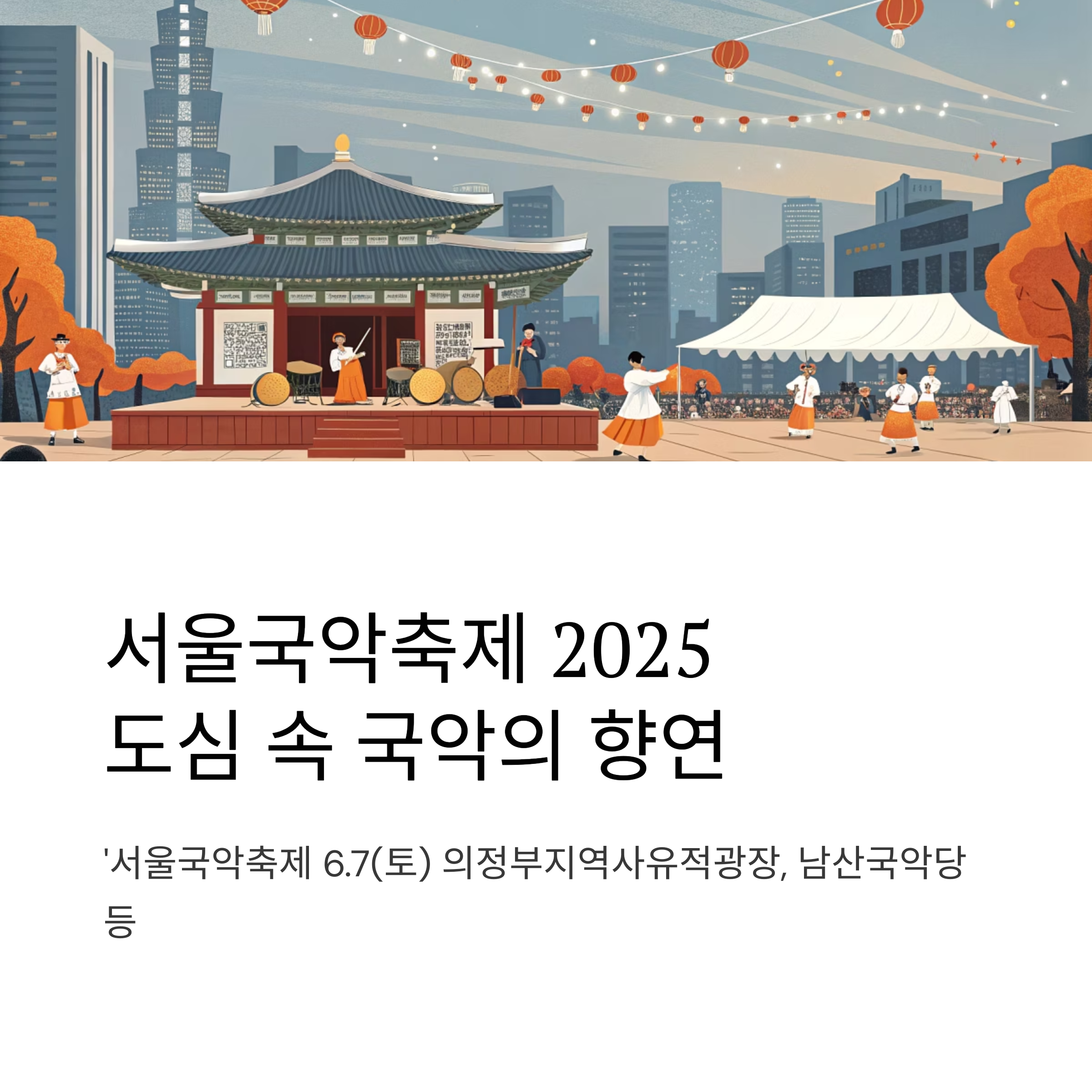 서울국악축제는 전통음악의 뿌리를 지키면서도 현대적 감각을 더한 다채로운 무대가 특징입니다.