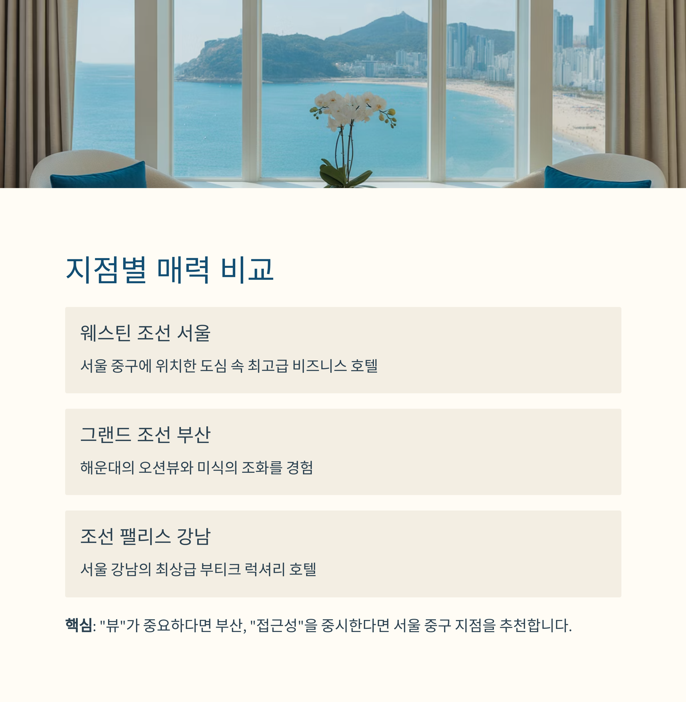 핵심: "뷰"가 중요하다면 부산, "접근성"을 중시한다면 서울 중구 지점을 추천드립니다