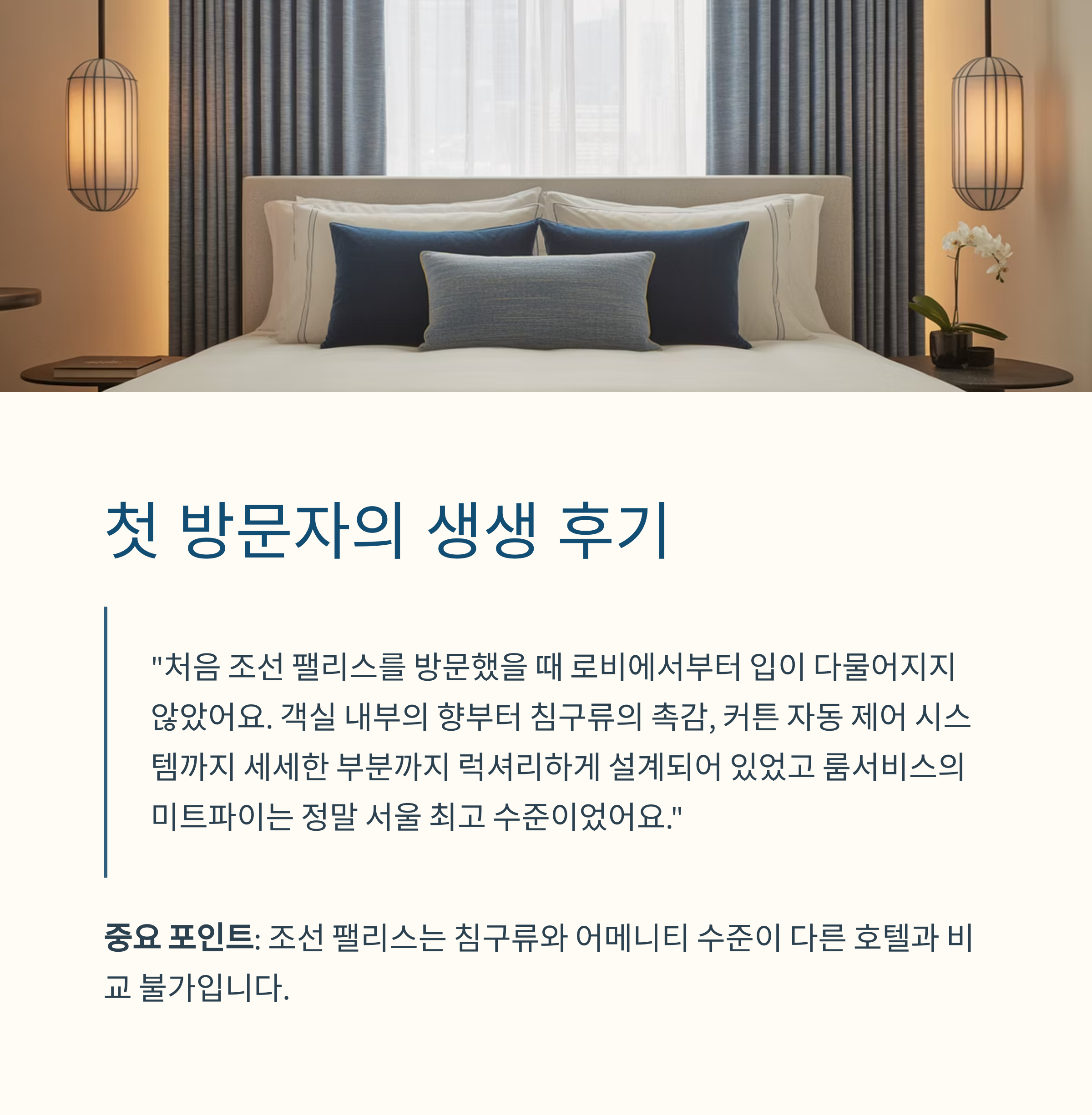 중요 포인트: 조선 팰리스는 침구류와 어메니티 수준이 다른 호텔과 비교 불가입니다
