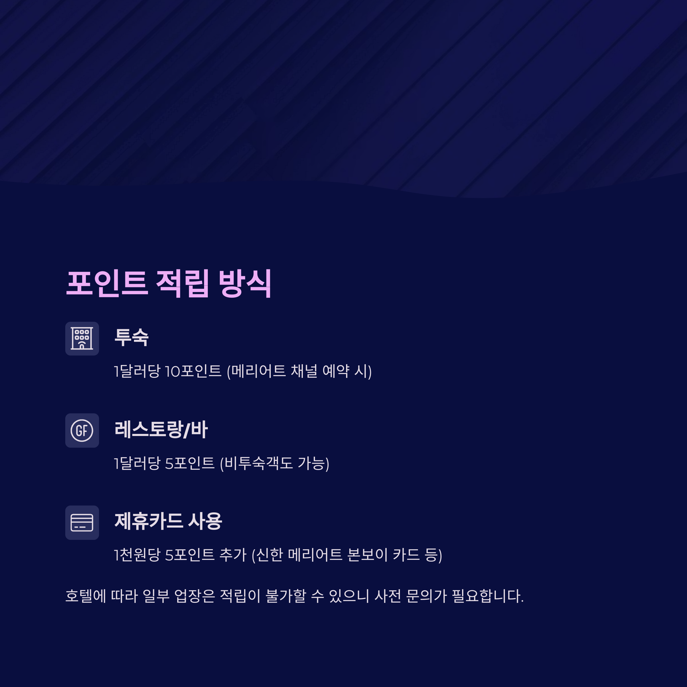 적립 조건 메리어트 채널 예약 / 일부 업장 제외