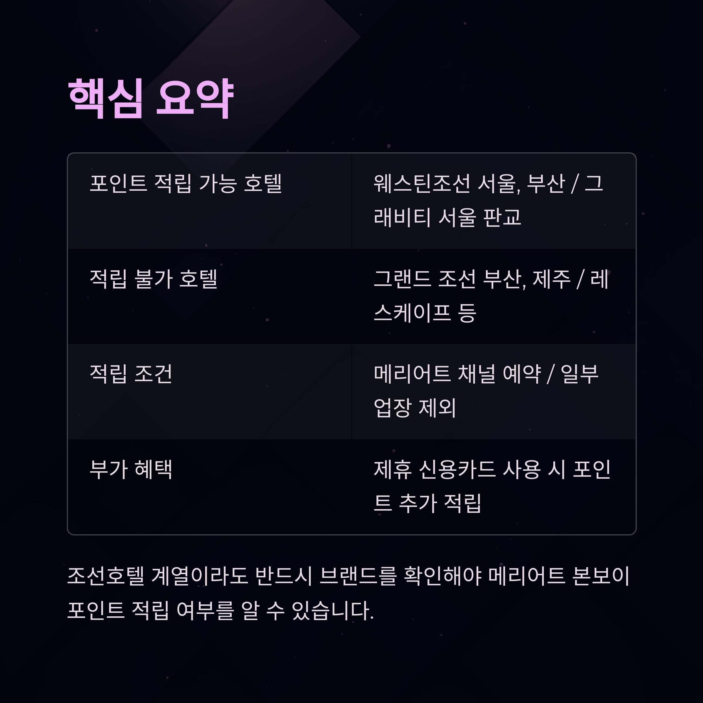 조선호텔 계열 중 메리어트 포인트 적립 가능한 곳은 어디일까요?
