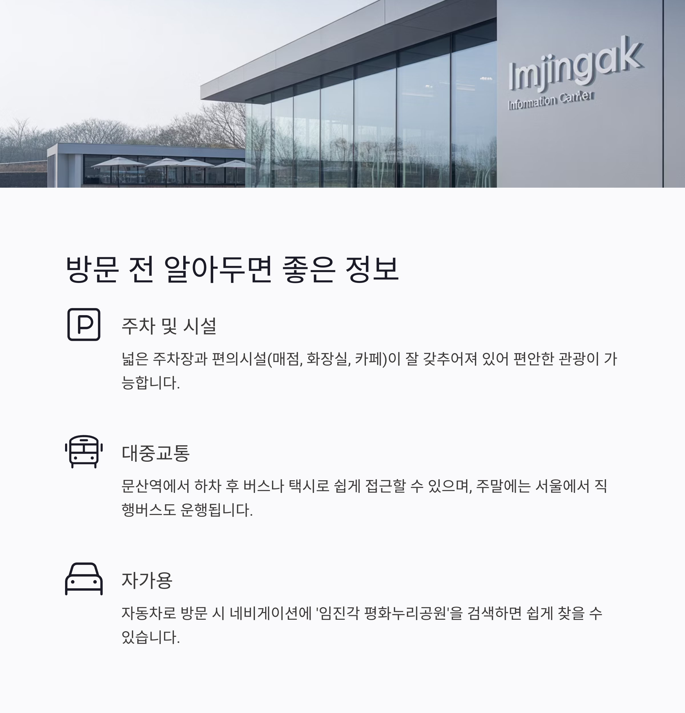 접근할 수 있으며, 자차 이용 시 임진각 주차장을