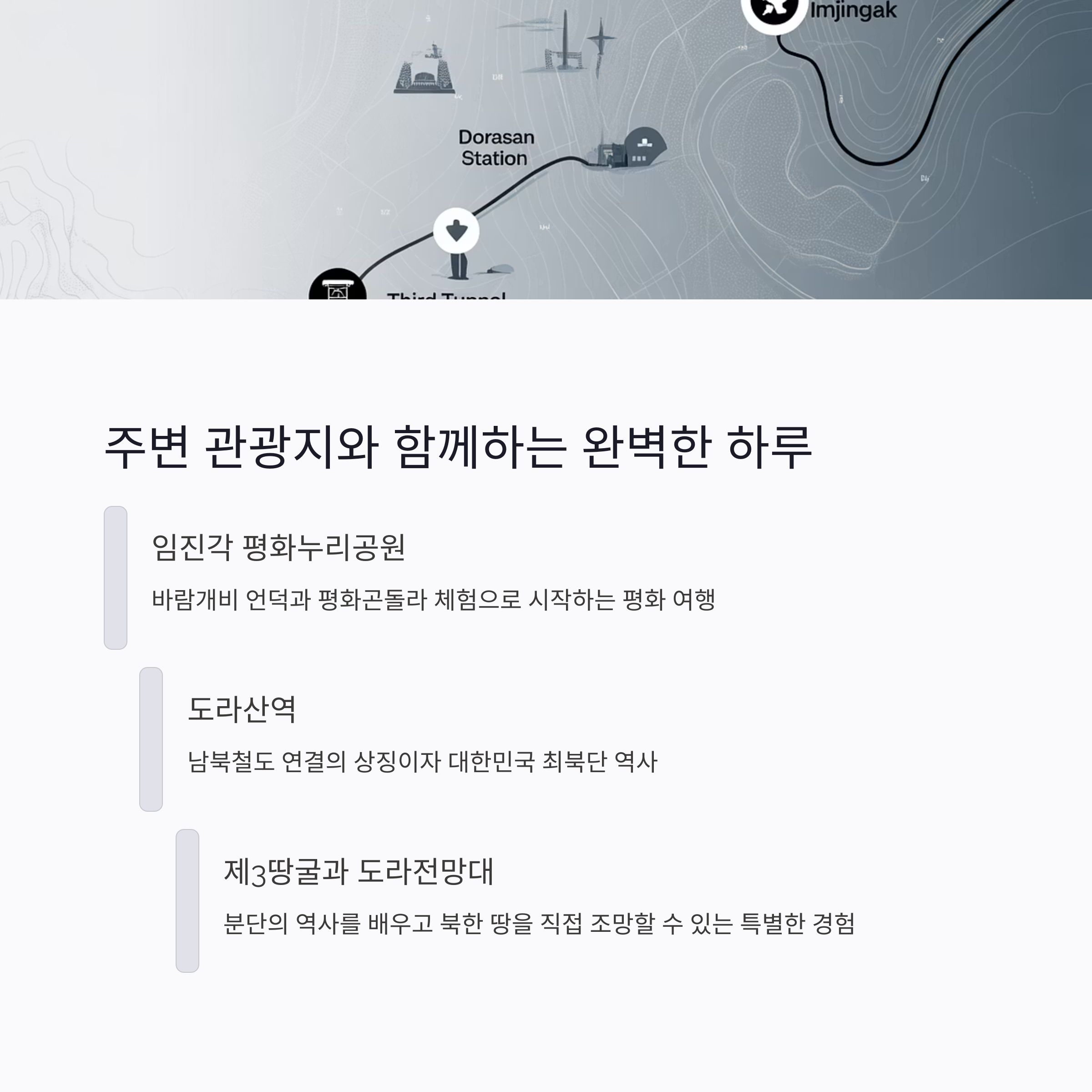 공원 인근에는 도라산역, 제3땅굴, 도라전망대 등이