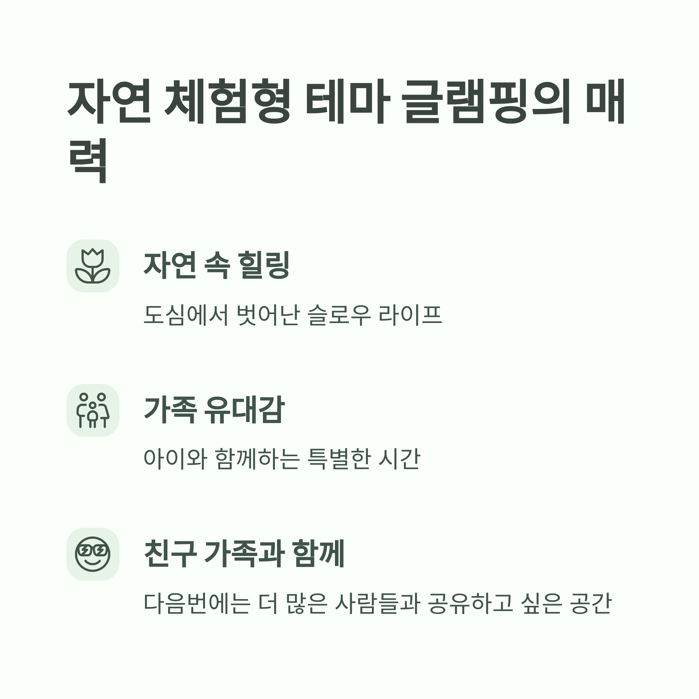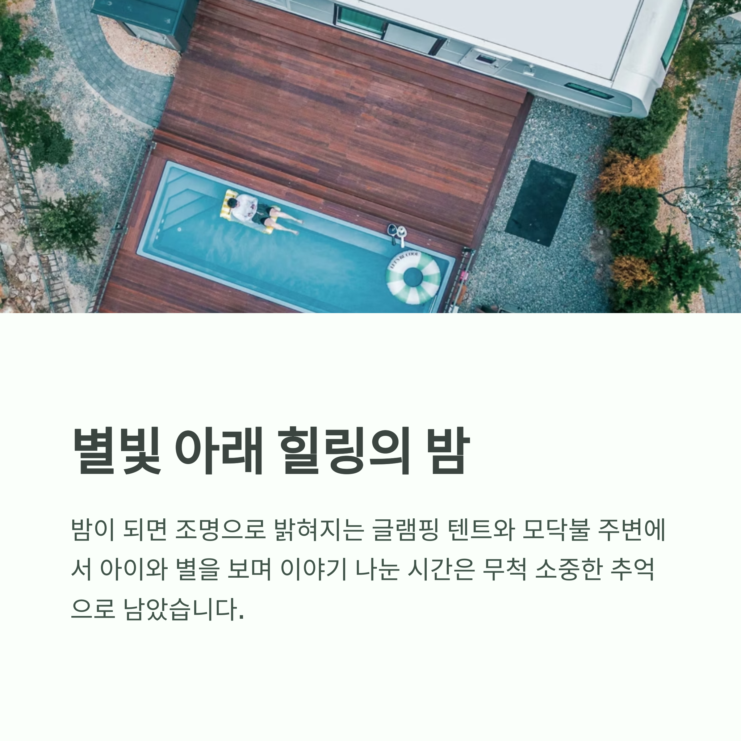 | 자연 체험 | 매우 높음 | 숲+물놀이+불멍 조화 |