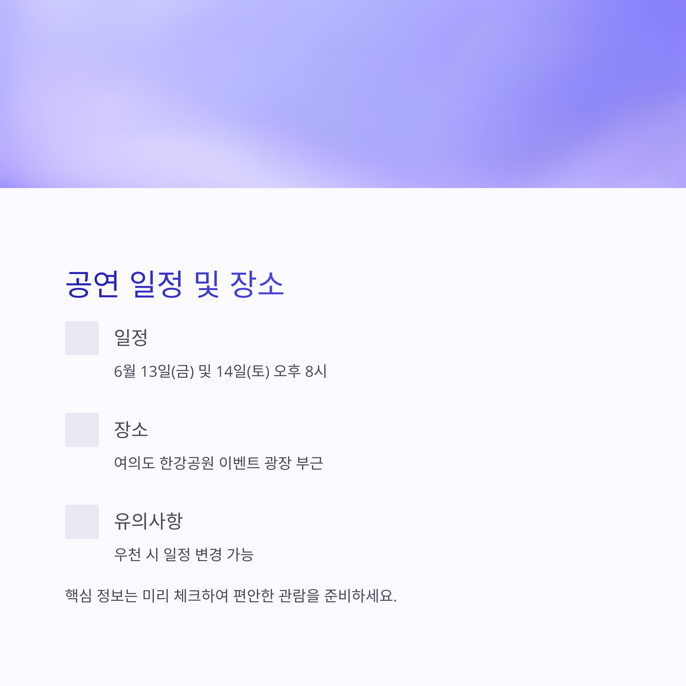 공연 일정 및 장소, 미리 확인하세요