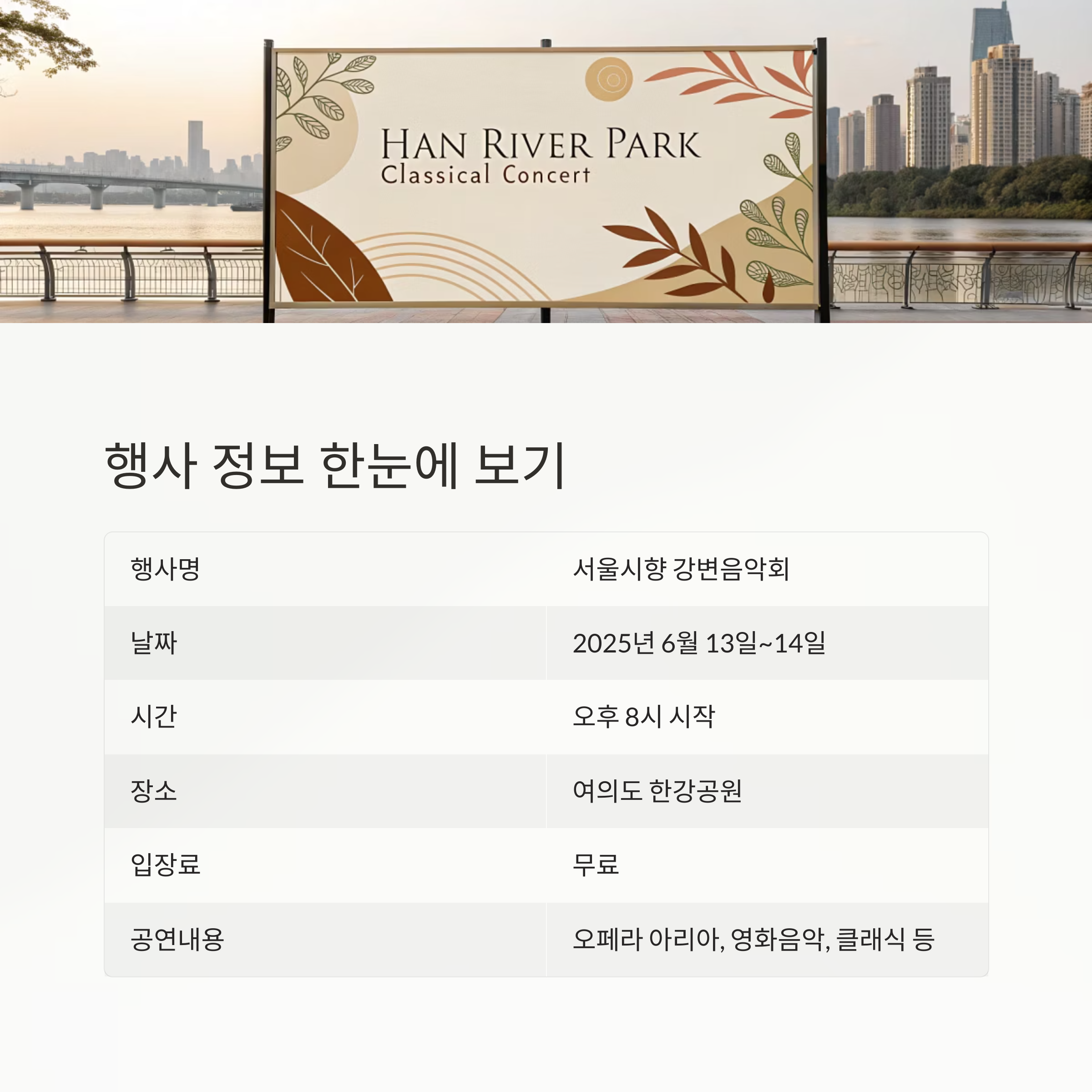 | 행사명 | 서울시향 강변음악회 |