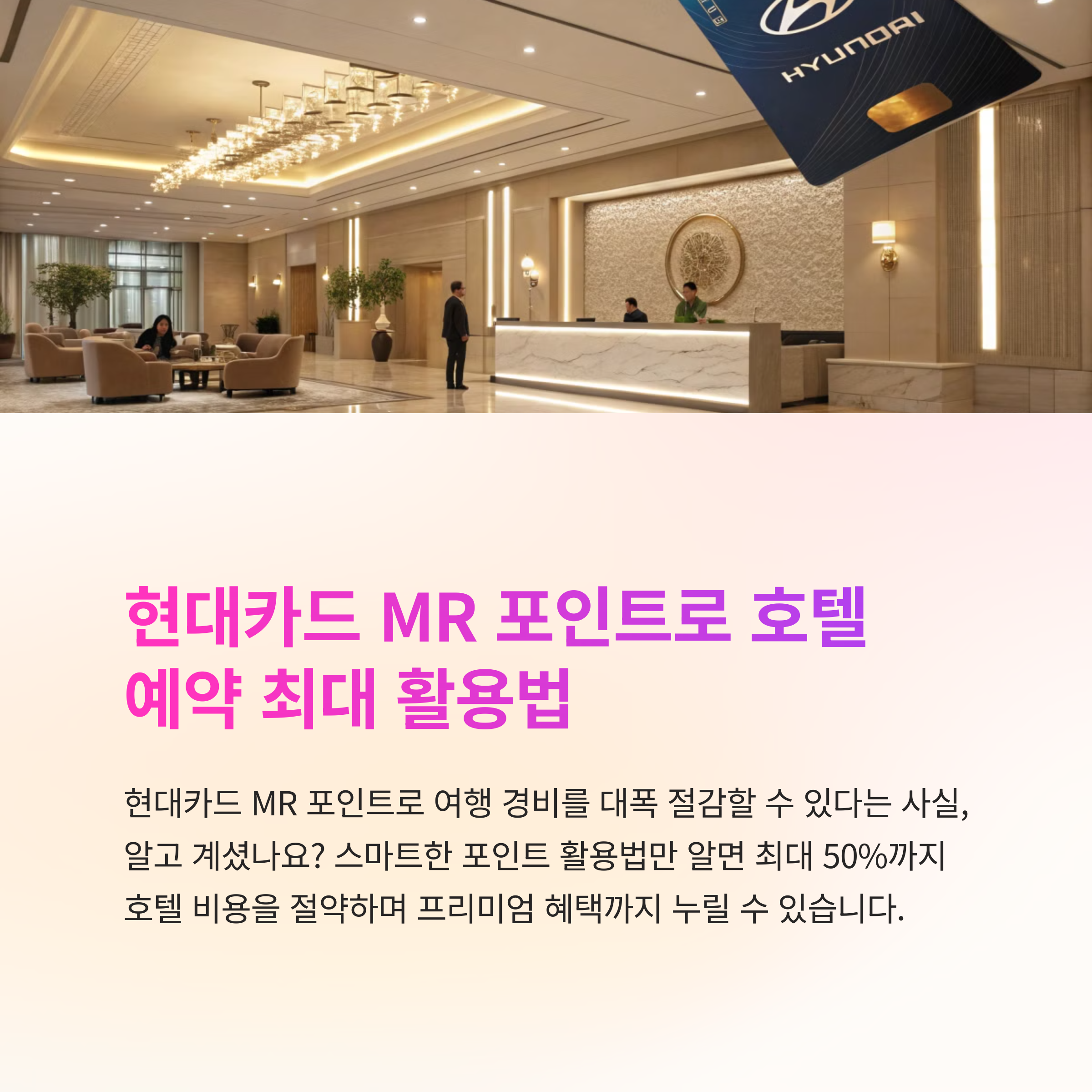 여행을 계획하면서 가장 고민되는 부분 중 하나는 바로 숙박 비용입니다. 특히 호텔을 선택할 때는 비용 대비 만족도를 고려하게 되는데요. 현대카드의 MR 포인트는 이런 고민을 줄이고, 더욱 스마트한 여행을 가능하게 해주는 강력한 수단입니다. 단순한 할인 혜택을 넘어, 글로벌 호텔 체인과의 제휴를 통해 프리미엄 서비스를 누릴 수 있는 기회를 제공하고 있어 많은 분들에게 각광받고 있습니다. 이러한 MR 포인트는 다양한 방식으로 호텔 예약에 활용될 수 있으며, 전략적으로 사용하면 그 가치는 몇 배 이상 높아지게 됩니다. 성수기나 공휴일과 같은 예약이 어려운 시기에도 유연하게 대처할 수 있고, 포인트 전환을 통해 세계적인 호텔 체인에서도 사용할 수 있어 실용성이 매우 뛰어납니다. 이번 글에서는 현대카드 MR 포인트를 활용한 호텔 예약 방법을 체계적으로 정리하고, 데이터 기반으로 실제 활용 전략까지 안내해드리겠습니다. 그동안 MR 포인트를 어떻게 활용할지 고민하셨던 분들께 실질적인 도움을 드릴 수 있는 정보가 될 것입니다.