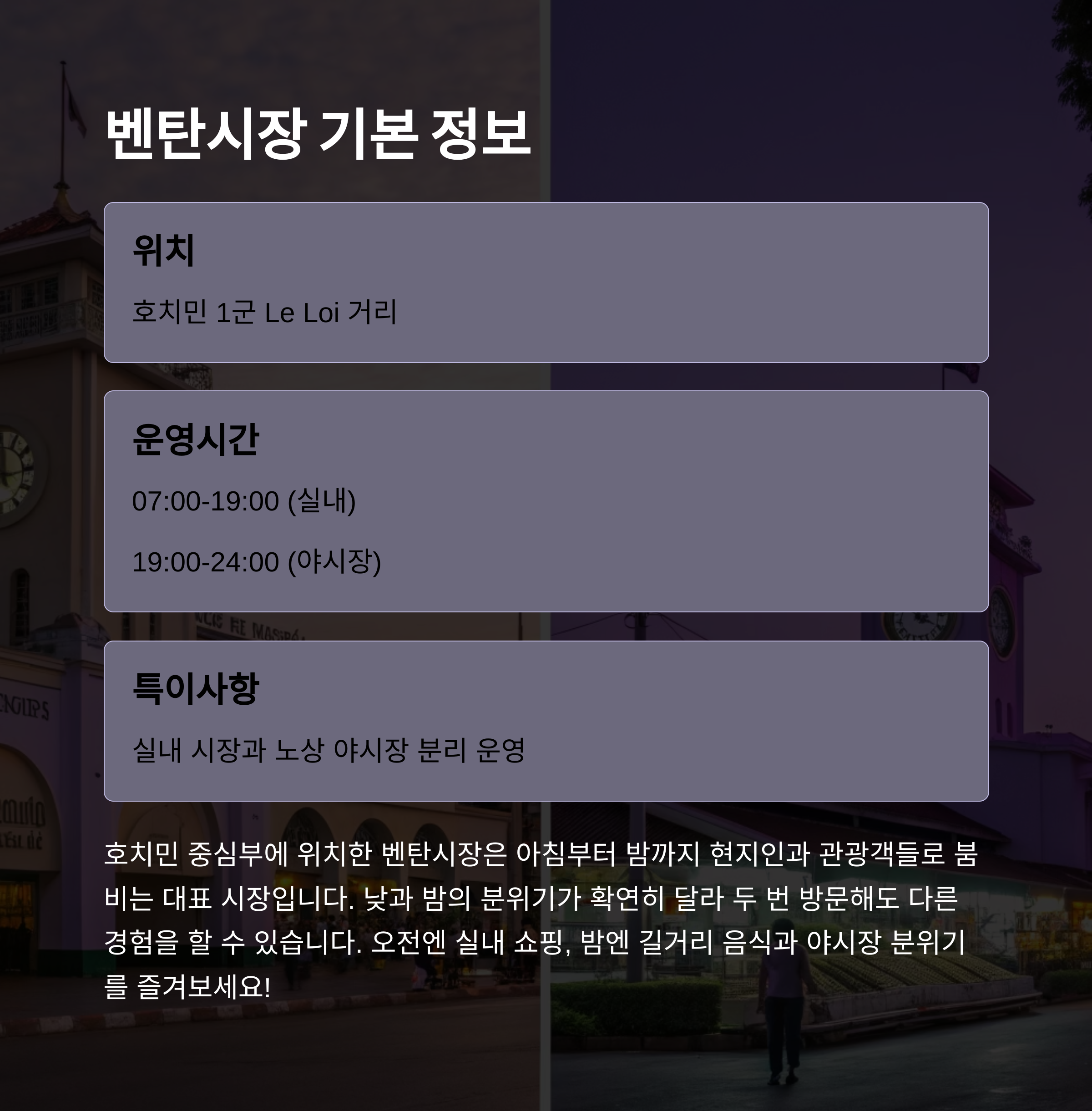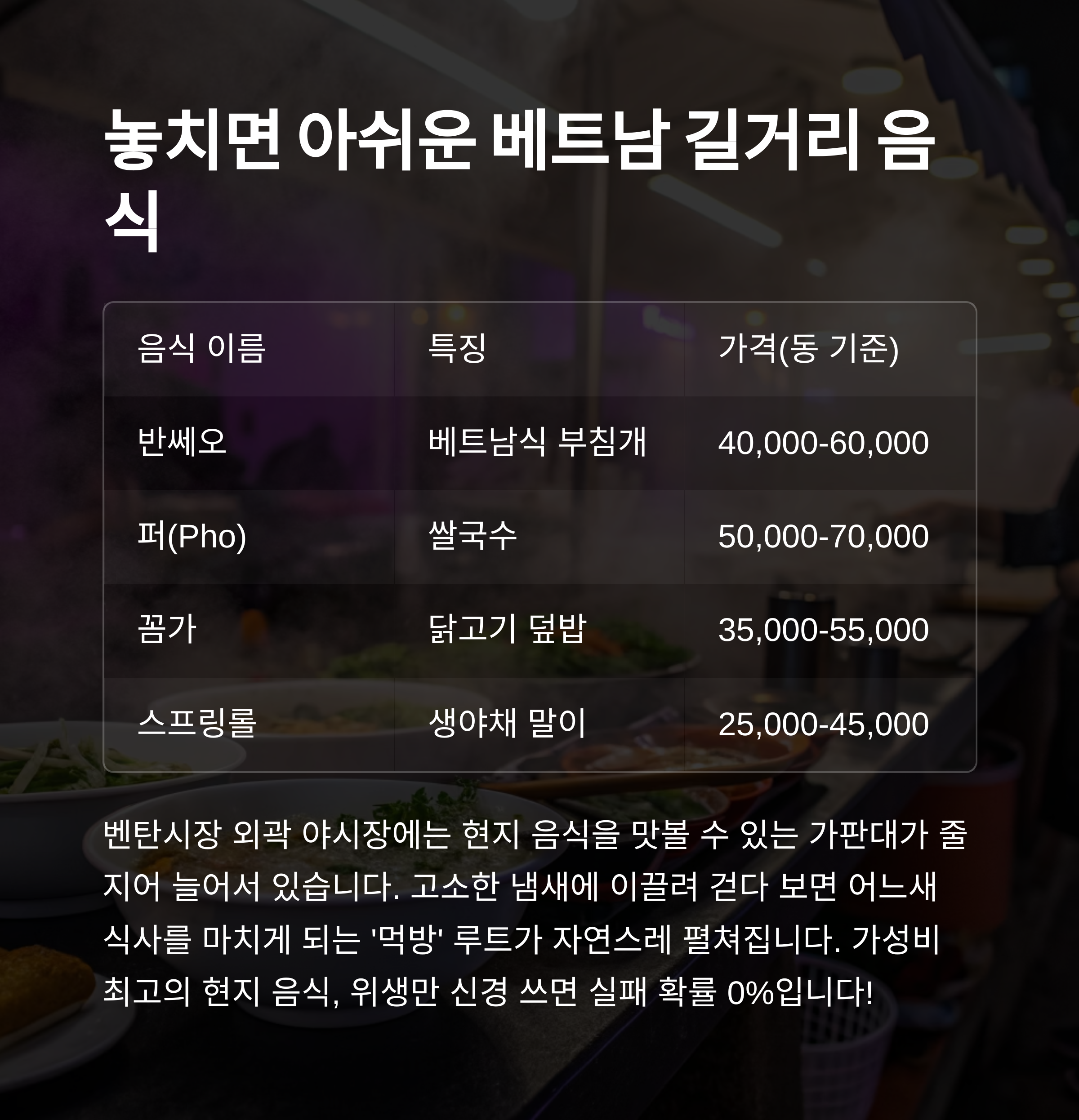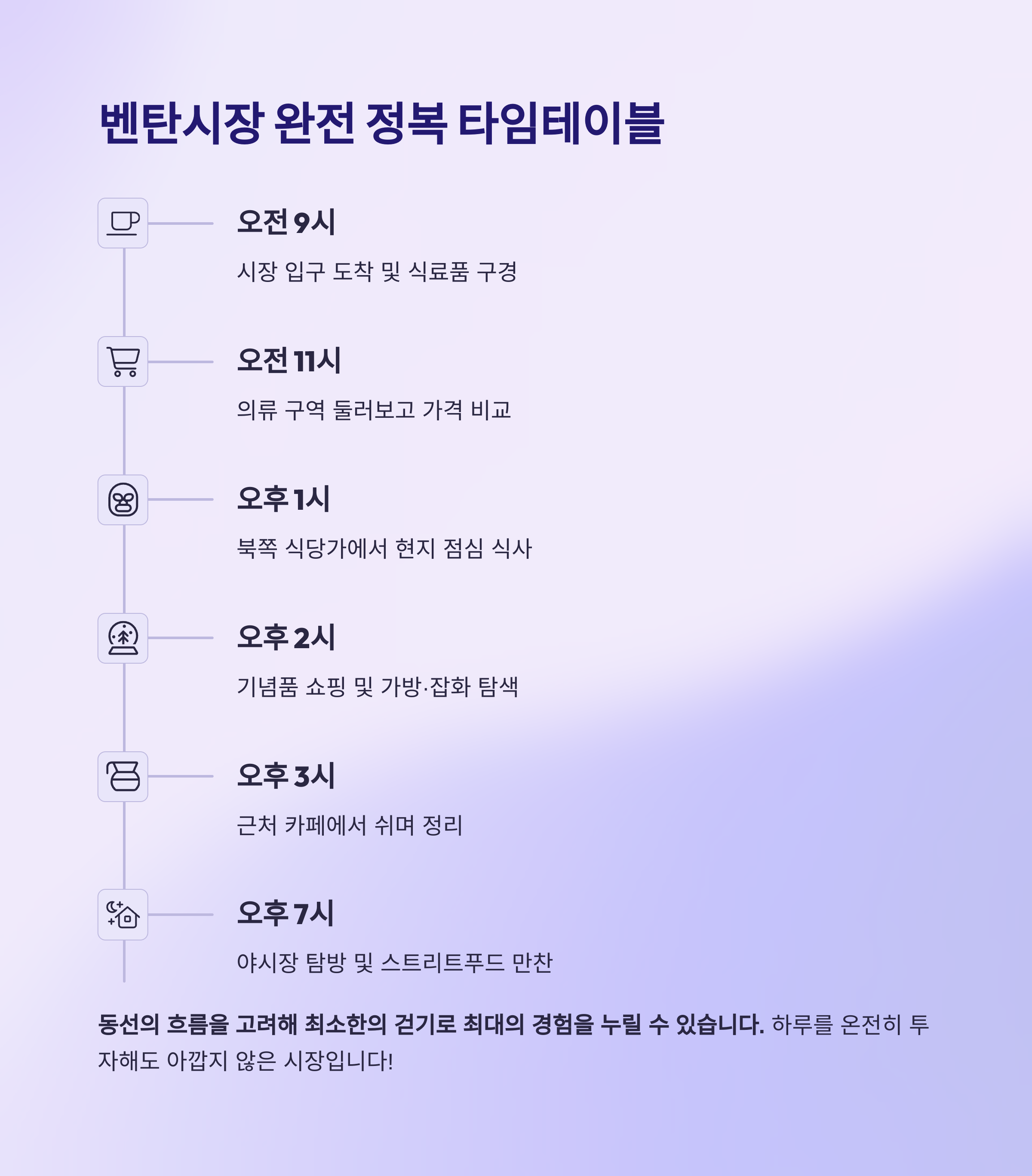 이 글에서는 벤탄시장을 효율적으로 즐기기 위한 핵심 정보와 꿀팁을