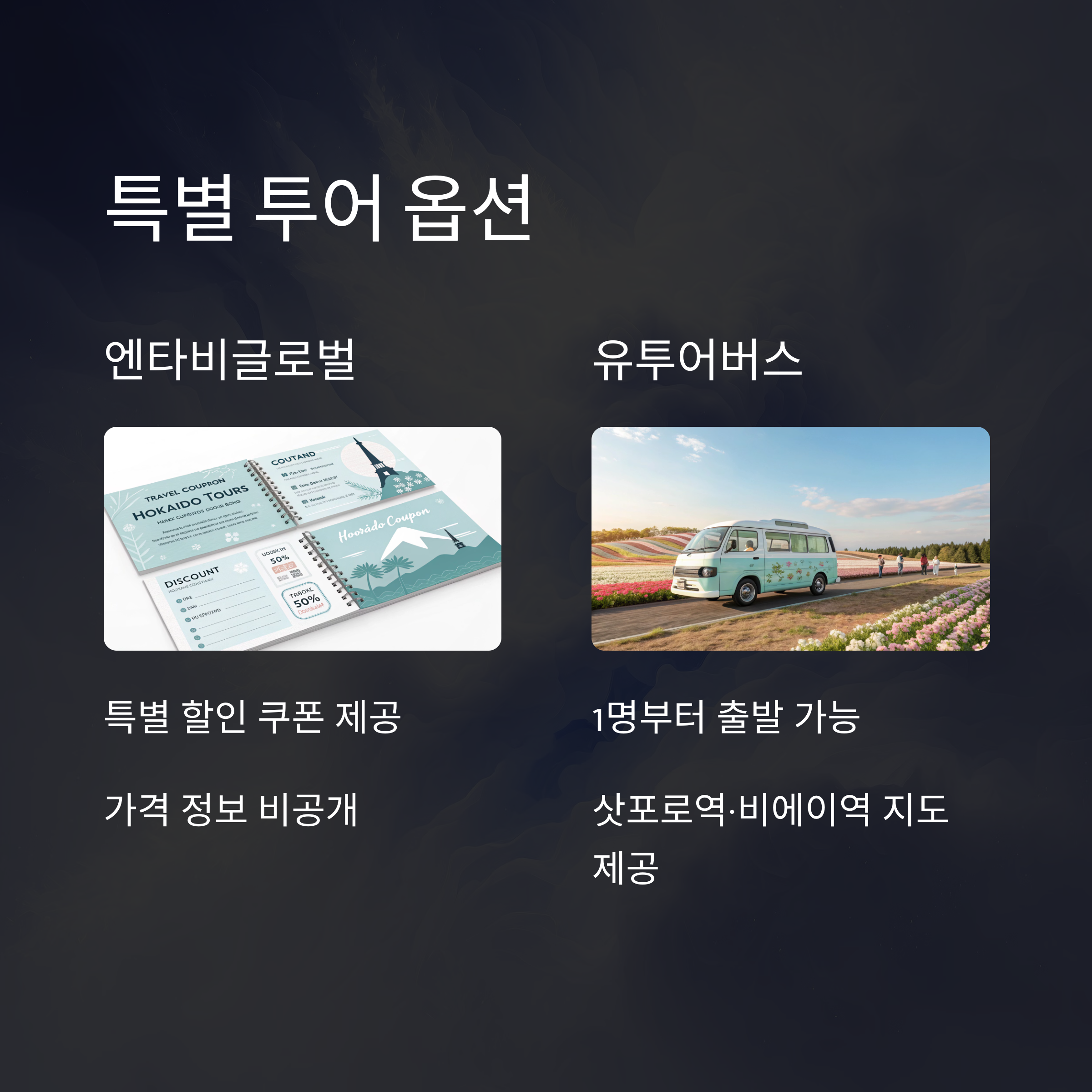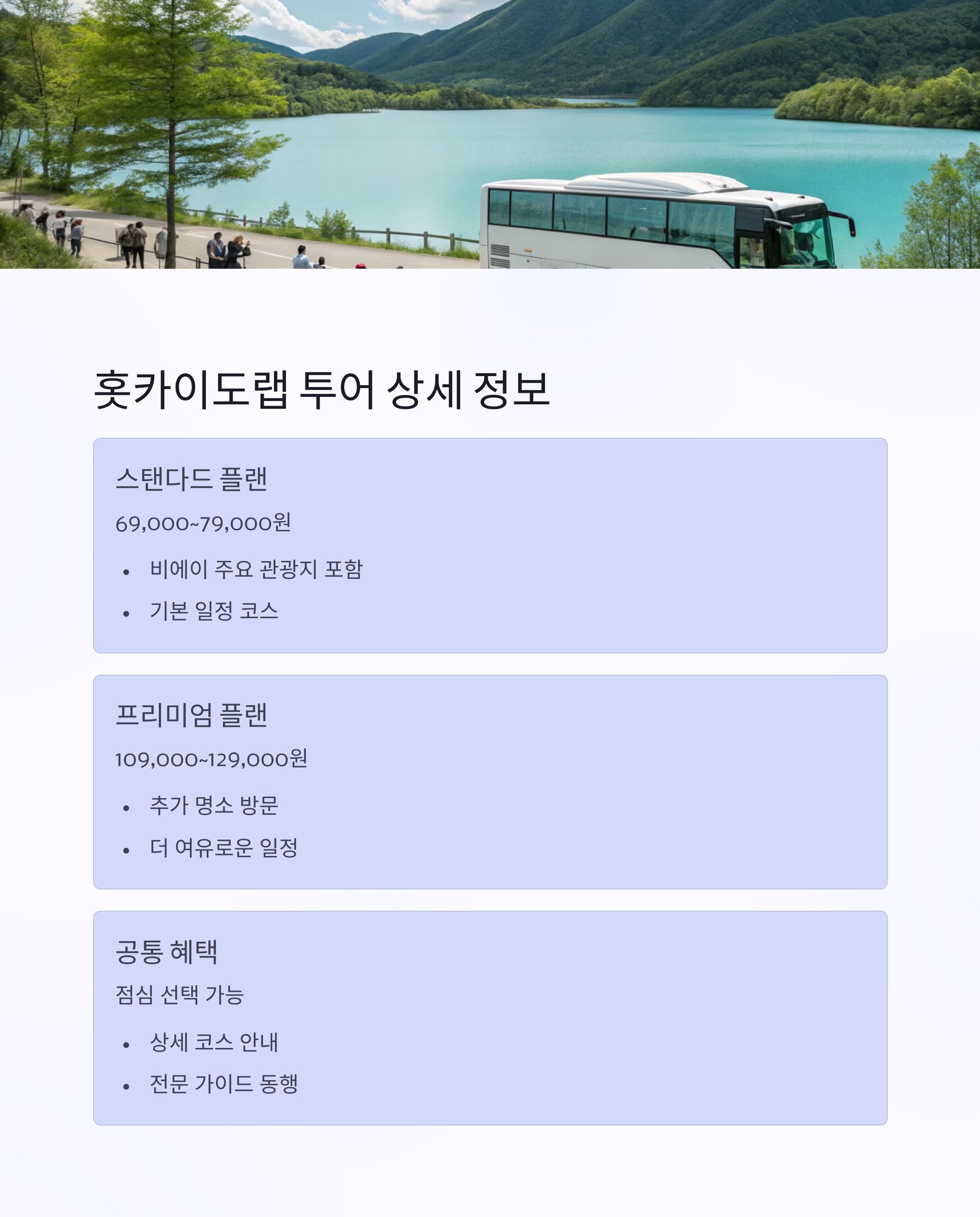 안녕하세요, 지금 떠나 볼까의 독자님들! 오늘은 홋카이도의 절경을 느낄 수 있는 후라노와 비에이 지역을 알차게 여행하기 위한 투어 업체 정보를 준비했어요. 각 업체의 가격과 코스, 혜택을 비교하여 여행 계획에 딱 맞는 선택을 도와드릴게요. 빠짐없이 꼼꼼하게 살펴보며 최적의 여행을 준비해보세요!