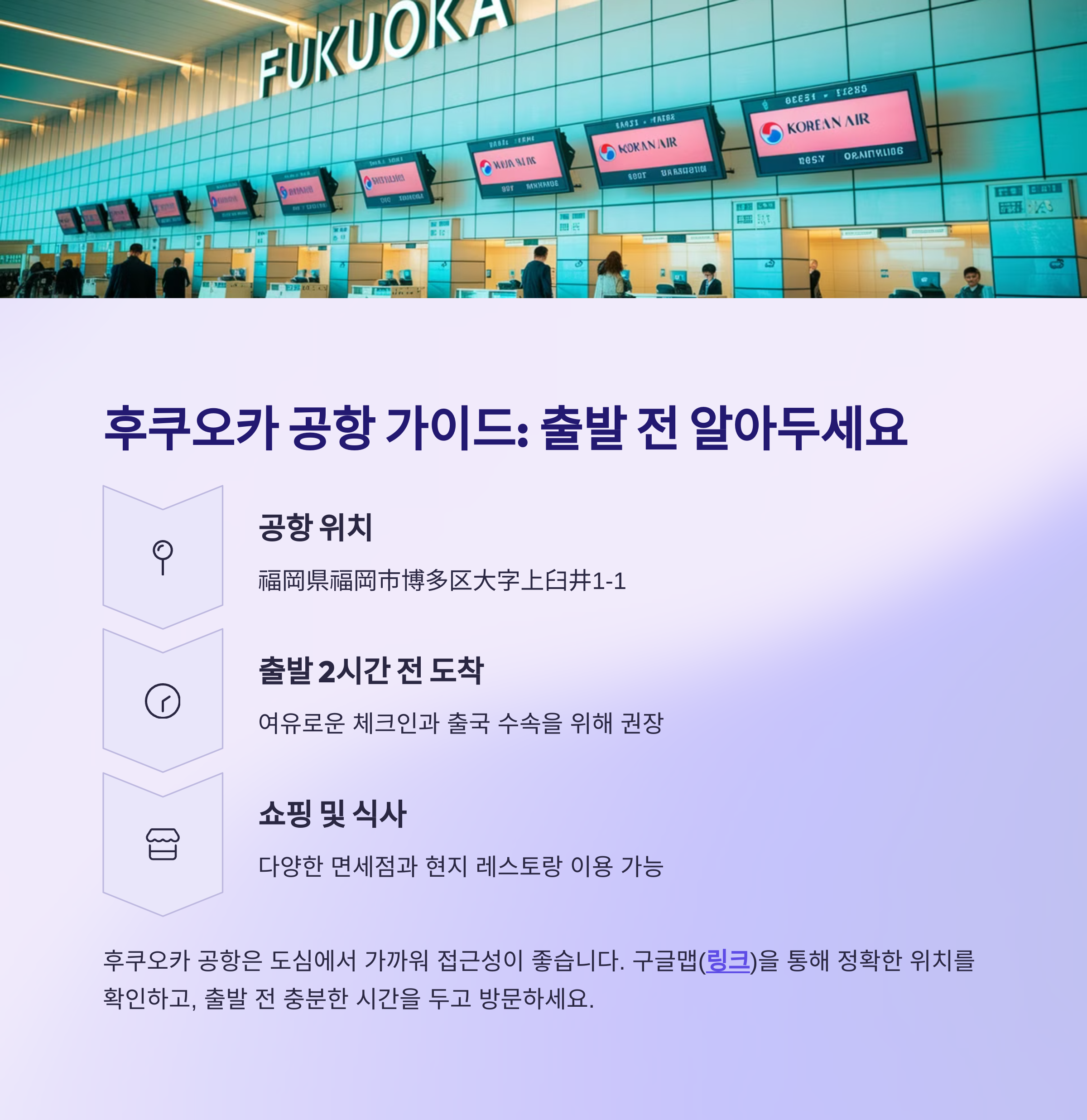 특히 후쿠오카 공항과 인천 국제공항은 접근성 면에서 모두 편리하게 설계되어 있어 출입국 절차도 쾌적합니다.