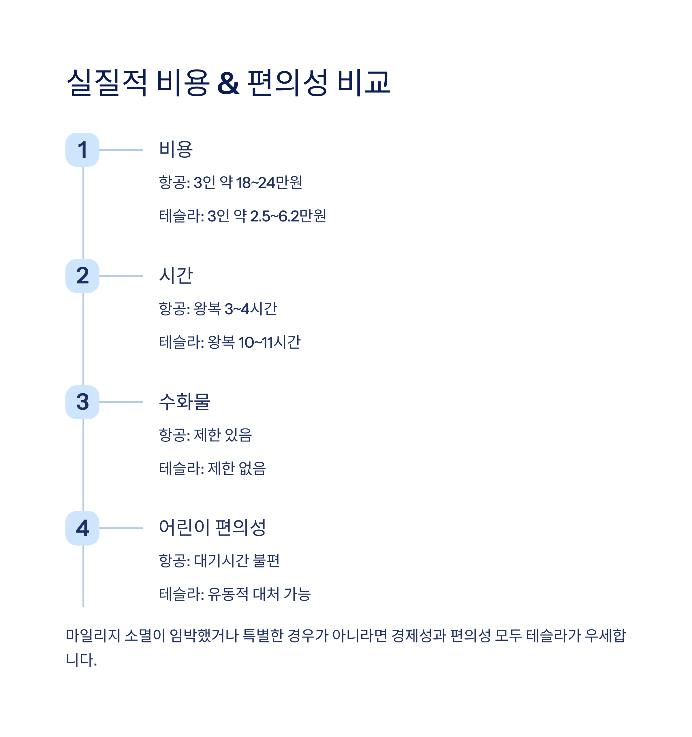 항공 마일리지 vs 테슬라 운전, 비용과 편의성의 진짜 차이