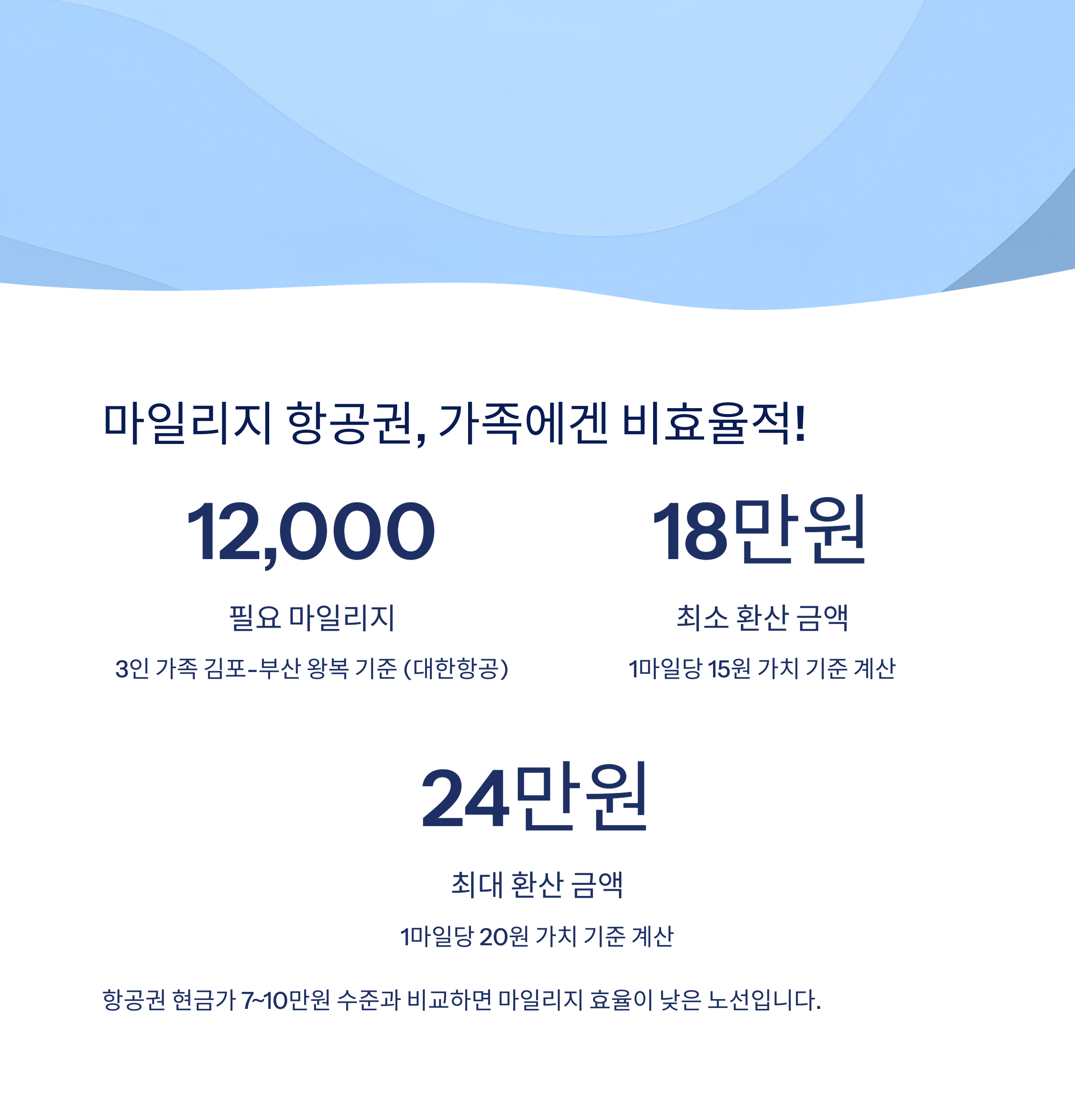 또는 가족 마일리지 합산 조건이 충족된다면 가족 여행으로 사용하는 것도 괜찮습니다.
