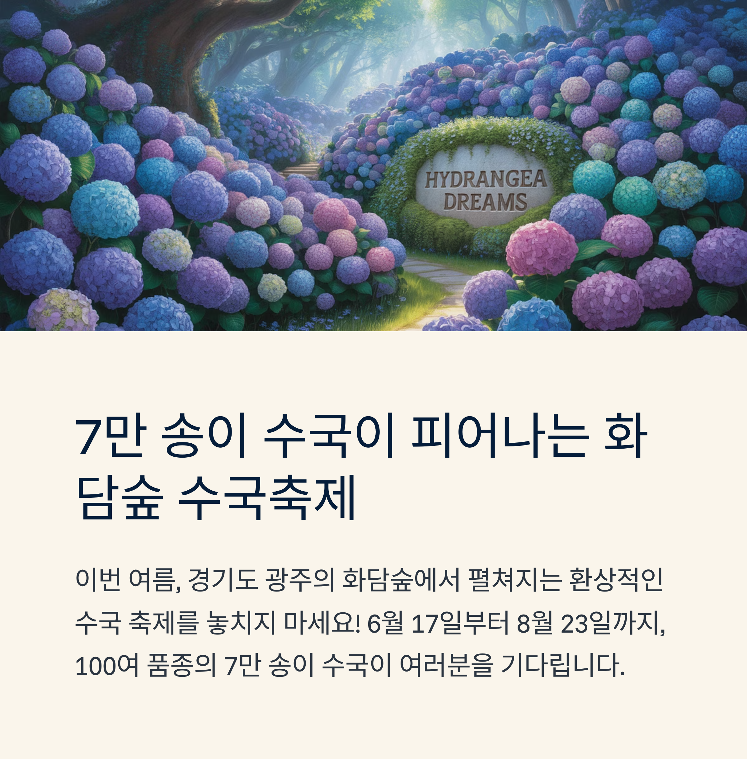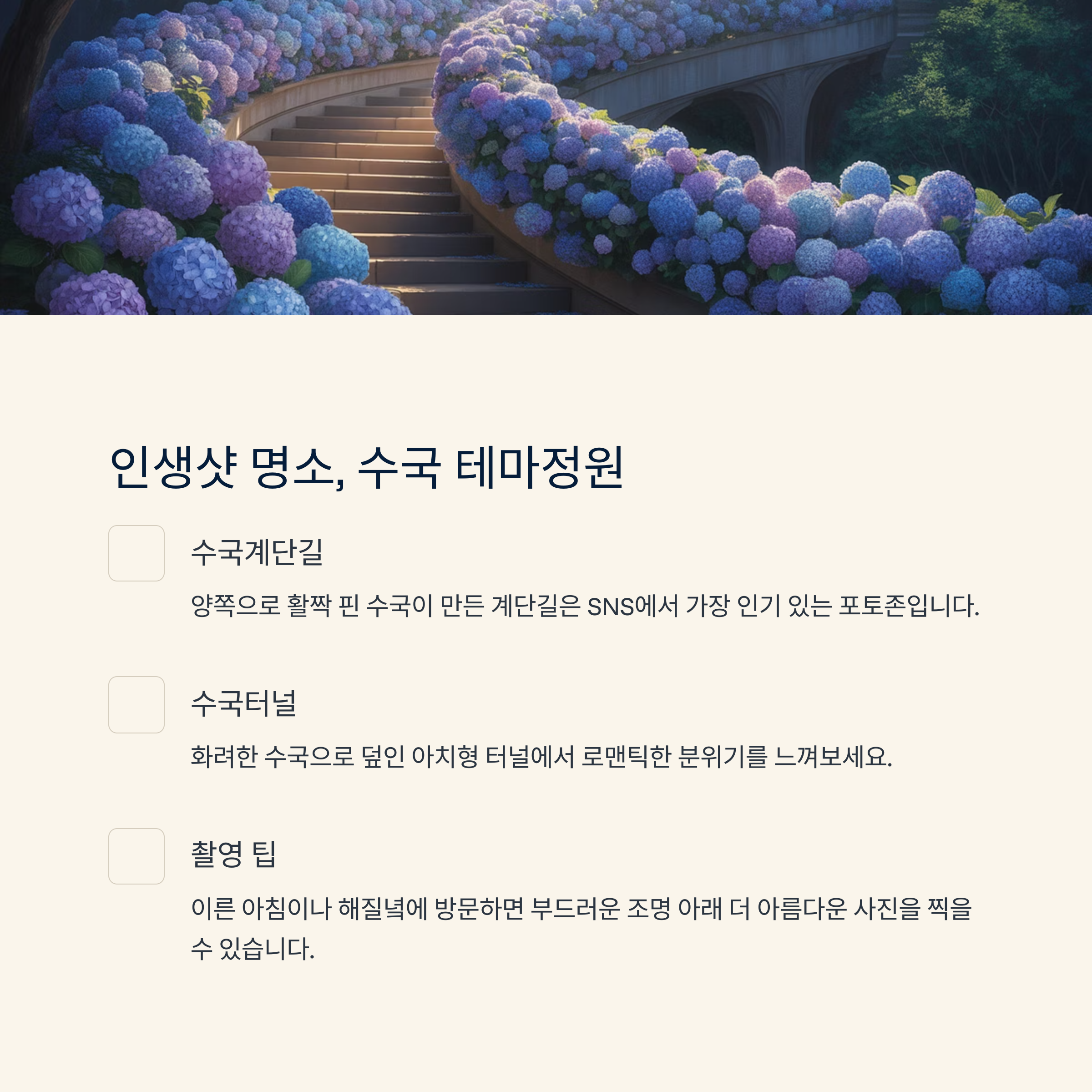 수국으로 물든 테마정원, 인생샷 명소 가득