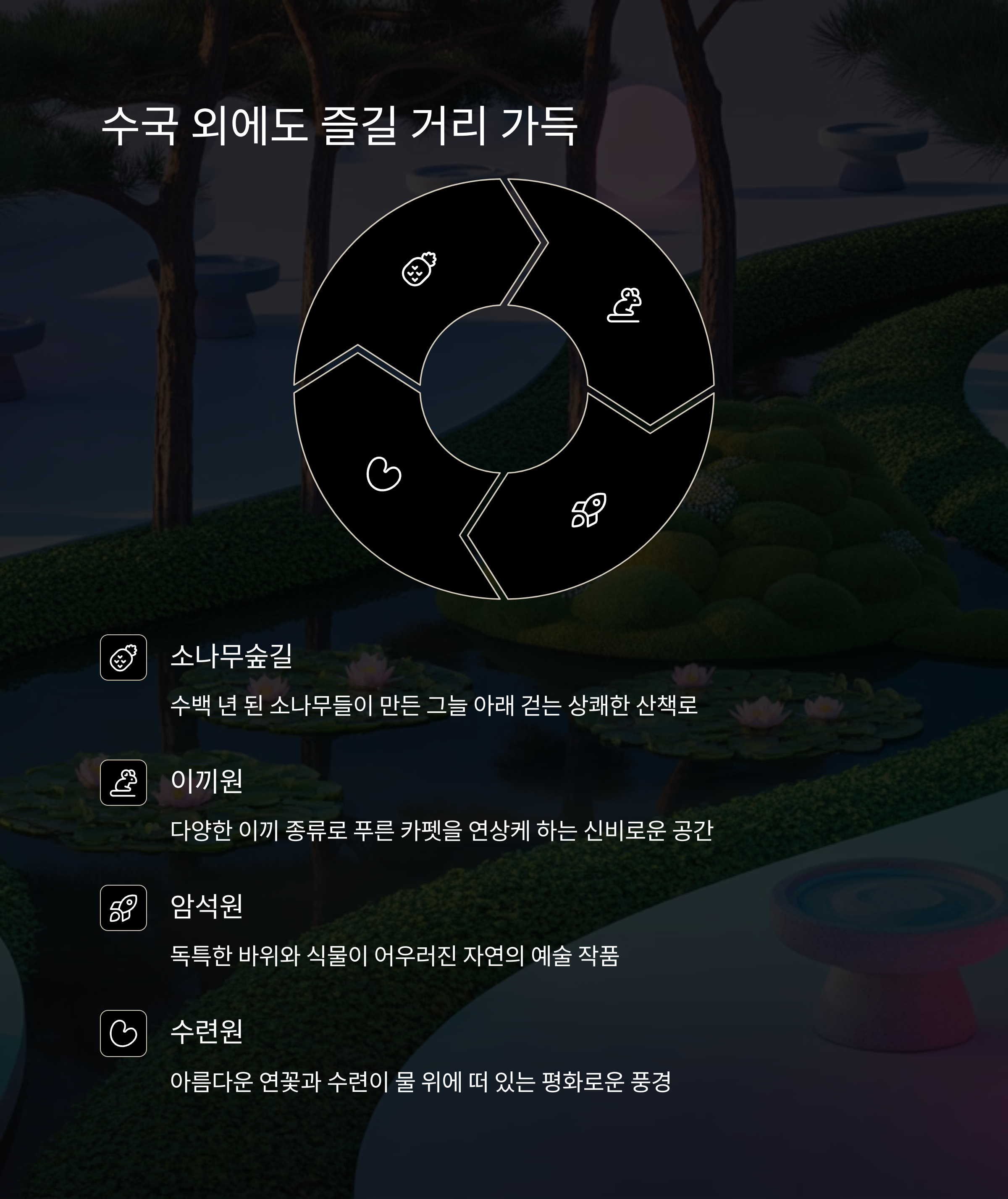 풍부하게 변화해 보는 재미를 더합니다. 특히 산책로마다